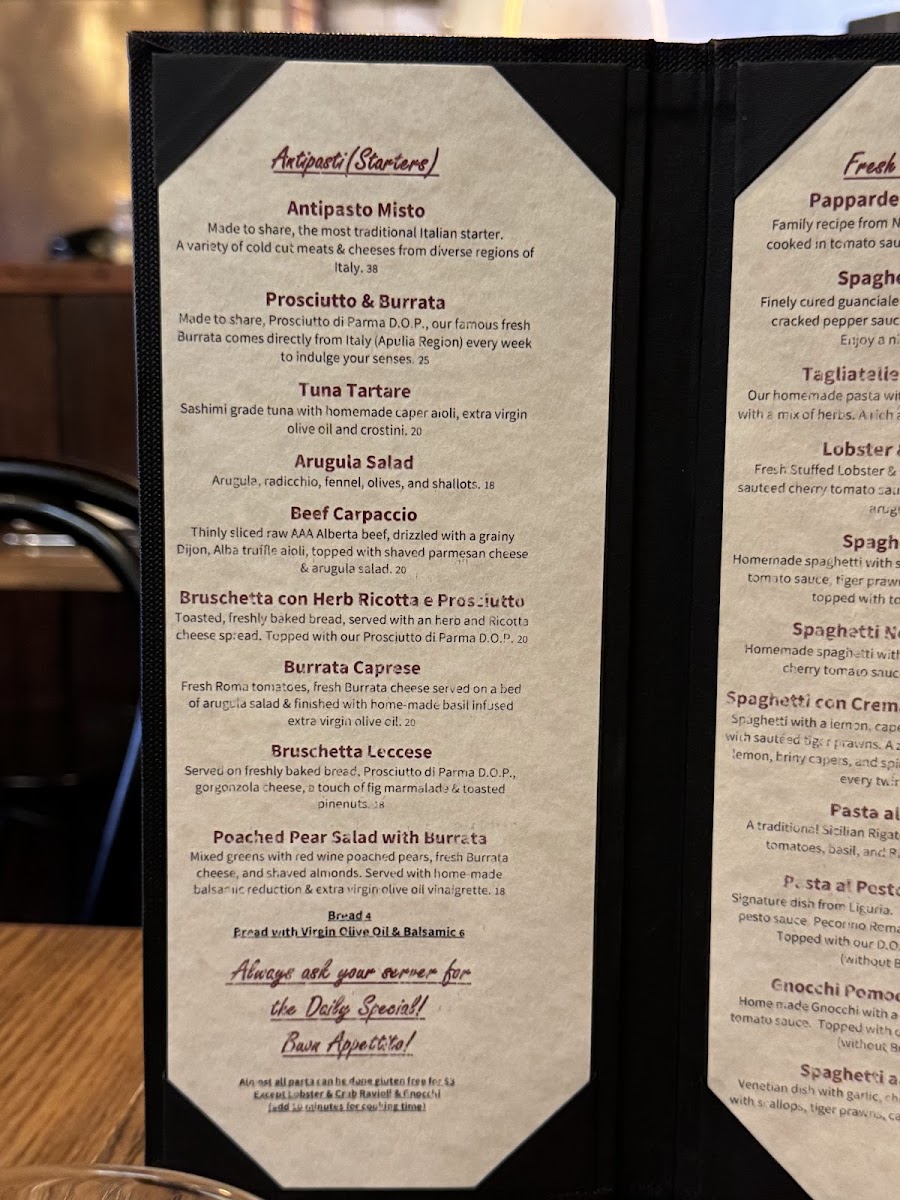 The menu is a testament to culinary excellence, featuring meticulous creations that highlight fresh ingredients. Begin your journey with delightful Antipasti like the Bruschetta Leccese, showcasing Prosciutto di Parma and Gorgonzola. For pasta lovers, the Rigatoni Al Pesto is a standout, marrying burrata with flavorful pesto, while the Lobster & Crab Ravioli offers a luxurious twist.